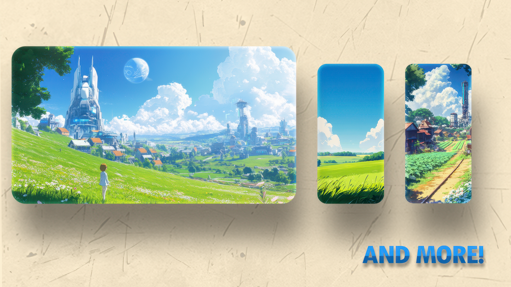 Introducing Ramu's Simple Solarpunk Wallpapers! This collection is inspired by the magical worlds of Studio Ghibli and the cool, futuristic style of Solar Punk. These wallpapers are perfect for jazzing up your mobile phone, tablet, or computer screen.